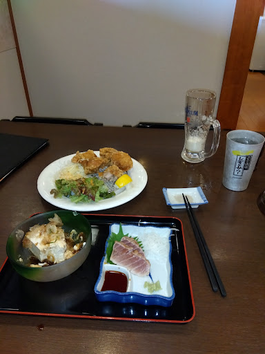Read moreメニューも豊富なので良さそうだと思い、風呂とマッサージの後で軽く一杯やっていこうと立ち寄りました。 確かにお刺身は美味しかったですね。 ただ、柔らかジューシー唐揚げはカチカチで、レモンサワーは炭酸が抜けてて、次は無いかな...