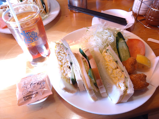 江南厚生病院の近くにあったので、ランチしたいと思って、お店に入りました。 「いらっしゃいませ。お一人様ですか。空いてるお席、お好きなところへどうぞ。」と店員さんから言われたので、席に座って待っていたのですが、10分位経っても、テーブルの片付けも水も出されず。こちらから店員さんに声を掛けたら、ようやく準備をしてくれました。 平日限定のランチメニューがあったので、注文して待っていました。 ホットコーヒーが出てくるまでに30分以上待ちました。その後でサンドイッチが出てきました。 それほど混んではいなかったので、待ち時間が長いように思います。店員さんからは「お待たせして申し訳ございません」と何度か言われました。 その日は時間に余裕があったので、食事は美味しかったし、ゆっくりできて良かったですが、急いでいる時は入らないほうがいいか...