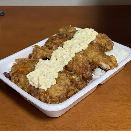 その中からびっくりチキン南蛮弁当を購入、びっくりなんて名前はいくらなんでも大袈裟だろうと思ってましたが、フタを開けたらホントびっくり、大きな器一面チキン南蛮で埋め尽くされています。たっぷりとタルタルソースをかけていただきましたが、そのタルタルソースに加えてカリッとした強めの衣にタレがしっかり馴染んでいてご飯がススみますね、普通の人なら二食分くらいのボリュームなのに690円という値段は破格、お腹いっぱい食べたい人にはうれしいお弁当だと思いま...