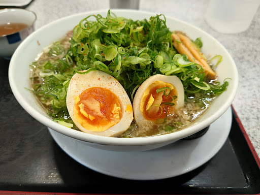湖南市三雲の旧国道1号沿いのラーメン藤チェーン店さんです。 大型トラックも駐車可能な駐車場で昔から職業ドライバーさん御用達のラーメン屋さんというところでしょうか。 訪問時は日曜昼過ぎでしたが近所の常連さんと思しきりリピーターさんで賑わってました。 訪問時頂いたのは煮卵焼き豚ねぎ拉麺をやきめしセットです。 味は昔ながらのカエシが効いた濃い目系中華そばの味ですが、背油と七味も効いていて飲みごたえあるスープです。 それに山盛りのネギともやしが丁度味の濃さを中和してくれて食欲をそそります。 薄切り焼き豚にも盛り付け前にたれをスプレーされてるようでこれまた野菜にとても合う味。 やきめしは昔ながらのしっとり系で単独では割とがっつり塩気がくる拉麺を程よくリセットしてくれて大変満足です。 量は成人男性だとラーメン単独では少々控え目、定食だと満足というぐらいの量でしょうか。 私はいつもやきめしセット派なのですが定食メニューも大変充実されておりお勧めのようですね。 栗東ー甲賀間を行き来されることがあれば1号線からそれてでも寄る価値のある...