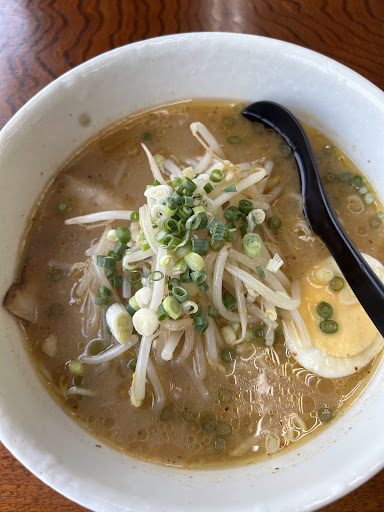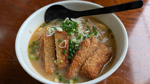 もやし、細かく切ったネギ、麺はノーマル、チャーシューは薄いけど、ほろほろとろけるタイプのやつ2枚、ゆで卵半分。 スープをすくったら底にナッツ?何か細かい固形物がありました。 スープはさらっとタイプの味噌、ガッツリ味噌ー!!!!っていう感じでは無い、さらり味噌味。 量はわたしにはちょうどいいくらい、お腹いっぱいです。いっぱい食べたい人には少し足らないかな、各種トッピングもできるそうなので、トッピングを楽しんでも良さそうです。 今度はトンカツラ...