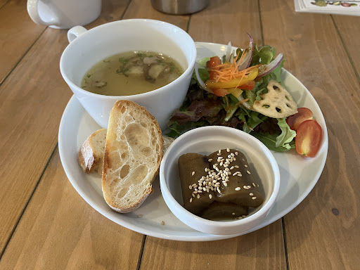 Read more夏季休暇も残すところ明日のみ。どこも出かけなかったので、今日は旦那と二人こちらのカフェに伺いました。 旦那はハンバーグプレートを、私は日替わりパスタセット「海の幸とインゲンのトマトソース」、食後にホットコーヒーをオーダーしました。 ハンバーグの方は写真を撮り忘れましたが、パスタの方はサラダとスープとバゲット、あと小鉢(ごぼうの煮物)が付いていてボリュームがあり、二人ともとても美味しく頂くことができました。 コーヒーは地元の珈琲豆専門店「ヨイマメ珈琲」さんから仕入れるオリジナルブレンドということで、さっぱりしながら程よいコクがあり、私が苦手な酸味がなく、とても好みでした。 今度お邪魔する時は、珈琲と一緒にスイーツをいただきたいと思いま...