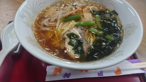 ラーメンを注文。 スープは香ばしい醤油の香りが良いが どこか臭みが残る。 麺は北本、鴻巣でお馴染みの冷や麦みたいな平麺。 トッピングはちょっと個性的だが 味のしない弱々ワカメと ナムルのような味のモヤシが スープの邪魔になっていて残念。 良くも悪くも昔ながらの味、ちょっと合わない。