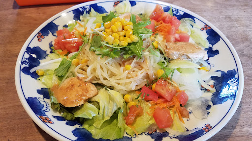 7月3日、ゴマだれ冷やしサラダ麺を食べた。 彩り野菜が宝石みたいでキレイ✧︎ デザートはオーソドックスなチョコバナナパフェ🍌注文しました。 雑貨や、フリーマーケットものぞいてみました。