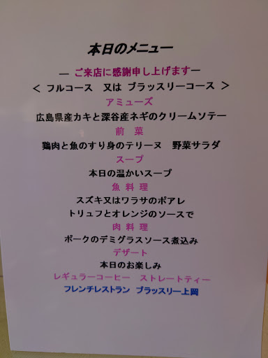 お料理はブラッスリーコースをオーダー。 前菜盛り合わせからメインの肉、魚を連れとシェア。魚はワラサがとてもさっぱりと最後まで飽きる事なく食べられるものでした。 肉はポークのビーフシチューみたいな感じのもので、これは本当にウマイ!!