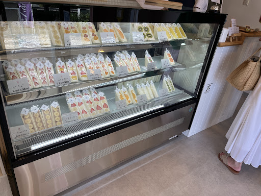 氷が気になり訪店するも、8/31迄で終了との事、残念に思いながらフルーツサンドを購入する。 パンはフワフワ・しっとり系、クリームはサンドする果物によって味が違う気がした。(チーズ系と普通のクリームとある?)サンドの中身はフルーツぎっしりを期待したが、切った断面付近はあるがそこ以外は余り入っていなかったのが残念。クリームはしつこくなく、サンド自体は美味しい。