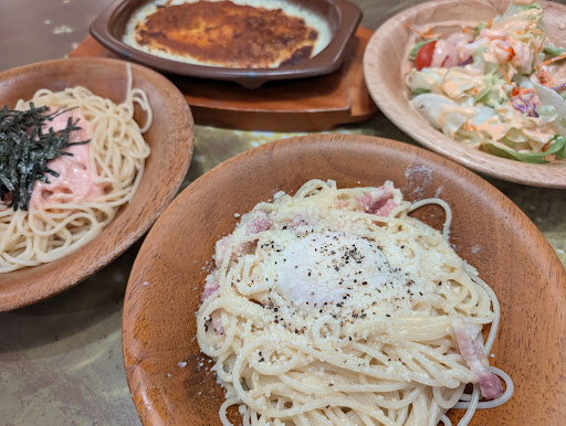 It's saizeriya, so don't expect anything amazing. 100yen wine is pretty great though. Don't be deceived by seemingly cheap prices for food, as it doesn't include rice, side dishes or soft drinks (that's how...