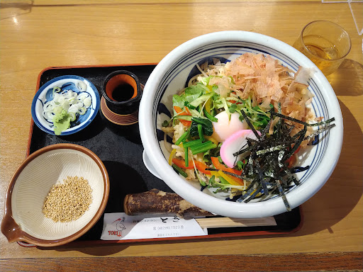13時過ぎの来店。入口を入ると番号をとる機械があり店内は座敷やカウンターなど広かったです。少し待たされ一人だし、カウンターは空いてるのになぁ〜と思っていてたら4人席に案内してくれました。ちょうど一段落した頃だったのか、それほど混んではいませんでしたが いいんですか?って思っちゃいました。 おすすめメニューの“朱鷺の巣篭もりそば“を注文。見た目も美味しそうで想像よりも大きい器に「お〜っ」っとテンション一気に上がってしましい食べる前に袖に引っかけて汁をこぼすという失敗をしましたが新しい、オシボリと汁を持ってきてくれ店員さんの対応も良かったです。 おかげで、とても美味しくいただきました。 今度はラ...