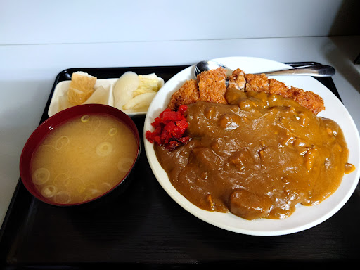 Read more2024.9.21 カツカレー950円 住宅街の奥へくねくねと入って、小学校の校庭の前にぽつんと大衆食堂。 14時過ぎのまったりタイム、先1、後1。 カツカレーは渋い鉄の食器に乗せられ、まさに絵に書いたような、大衆食堂のカツカレーでテンションだだ上りw カレーは豚の旨味がたっぷりでたポークカレーで、もっさりとした舌ざわりが無茶苦茶ご飯に合うタイプでイメージ通り。ロース肉の塊とじゃがいもがゴロゴロで、カツが無くても満足度が超高いカレーですね。 カツは注文ごとに豚ロース塊から切出し叩いて揚げる感じ。ライブ音&目視で確認済w 厚みはほどほどだが?サックサク熱々でうんめ。 ボリュームも十分で腹パンフィニッシュ。 小鉢や、旨い味噌汁もついて1000円でお釣りが来るカツカレー。私の後の若くてデカい兄ちゃんもカツカレーでした。 接客もとても感じが良くて、なんかずっと居たくなる食堂。 通し営業ってのも優しい。 俺のカツカレー殿堂入りしました。 次...