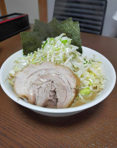 二郎系のラーメンですが、豚骨感が強くて、大好きな味でした。麺は平中太で、ちょうどいい感じでした。駐車場の駐車券を持って行き、見せたらば、味玉か海苔のどちらかをサービスしてくれますよ。是非持って行ってください。肉1枚とありましたが、2枚入っていて、十分な量です。余程肉付きでなければ、肉追加はしなくていいですね。 豚骨のスープと麺の絡みが最高で、大満足でし...