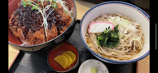 Read more祝日(海の日)に開店前(10:45)に通過した際に、お店に入る車があって、「もしかしたら並ぶ?」と警戒し早めに入車。10:50に4台程。 10:55既に15人程が並んでいたので、たまりかねて並ぶことに。それでもどんどん並んできます。 11:00開店と同時に順々に入ります(慌てることはありません)。 開店と同時に席が埋まり、その後は待ちになっていた。 (開店前に並んでも待ちになることもあるでしょう) 席についてお冷をいただくとともに発注 唐揚げ定食850円 ソースカツ丼と冷たい蕎麦セット1000円