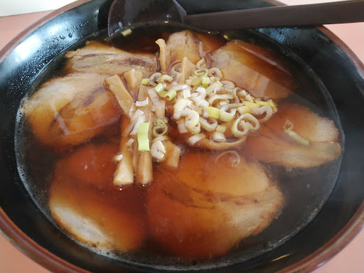 オーダーはチャーシュー大盛🤭 チャーシューのばらは薄目だが柔らかで美味しい👍️多めの脂身は全く気にならないです‼️ 葱の量が嬉しいね👌 コリコリメンマは大好き💕 醤油スープは甘味あり浮き油は少なめで、チャーシュー&メンマの味付けがスープと合っていて旨いですねぇ😋 麺は自家製麺で細ストレート❗️