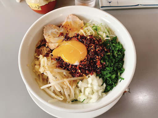 初めてなのでイタリアン(辛み増し)を頼みました( ᷇࿀ ᷆ ) ニラと玉ねぎ、もやしのシャキシャキ感、そして太い麺に唐辛子を砕いたものとひき肉とニンニクが混ざり合って凄いうまい(˶‾᷄ ⁻̫ ‾᷅˵) チャーシューは脂身が少なくてこれまたジューシー そしてまぜそばには追い飯がついてくるということで追い飯注文! メニュー表にはレンゲ一杯分と記載されてたんだけど、小茶碗一杯分で出てきた(˶‾᷄ ⁻̫ ‾᷅˵)最高やで ここの台湾まぜそばは東北一や
