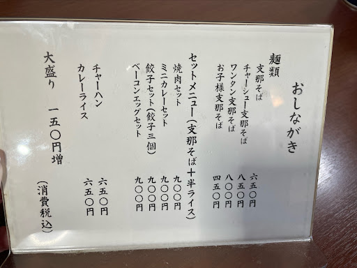 チャーシュー麺におまけで漬物付いてました。 駐車場が裏の道のちょい離れたとこにあるので見つけにくいかもしないので注意して下さい。 肝心のラーメンは昔ながらの味と言われるのがぴったりですがただ一つ違うのは昔ながらの高いレベルにあるラーメンです。 全てのバランスが完璧じゃないかなと思いました、最初からスープを飲み干すまで一切の味が無くなる事はありません、チャーシューも美味しい! スタンダードにして高品質ってすごくないですか? 焼肉セットとかチャーハンもあったので他のメニューも食べてから再評価しますが☆5にしても良いです。 お店でも言いましたが美味しかった。 ただボリュームを求める人はセットで大体1500から2000円前...