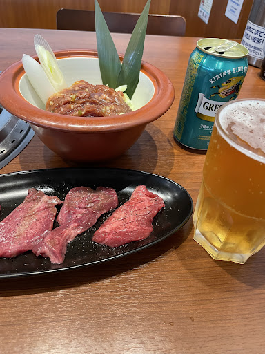 以前からサンドイッチマンのCMを見て気になっており、いつか利用したいと思ってました。 店内に入るとサ直ぐ店員の方が寄ってきてスッと席へ案内してくれます。 その後も気が回るし親切に対応してもらい気分良く食事することごできました。 ただ店内の設備が古いのか分かりませんが、とにかく店内は煙が充満していて酷い状態です。 目の前に七輪置いて焼いような状態です。ロースターが進歩している現在こんな店見たことありません。 (もしかして、わざと雰囲気づくりしてたらごめんなさい) 実際、自分の席も肉を焼くとモクモクとすごい煙が立ち上りました。(ただテーブルとかのベタつきはなかったような) 主役のお肉はお好みでいろいろ頼んでみましたが、味付けが濃いので追いタレいらずご飯が進みます。 正直、どの肉を頼んでも同じ味が楽しめます。 ちなみに2000円級の高いお肉も頼んでみましたが、肉質の柔らかさは感じられますが肉自体の味は分からなかった。タレ味を選択したので味は安い肉とかわらなかったなぁ。(塩頼んだほうがよかったかも) 冷麺は初めて食べました。特に感想はないです。 自分はやっぱり焼肉のお供は白米...