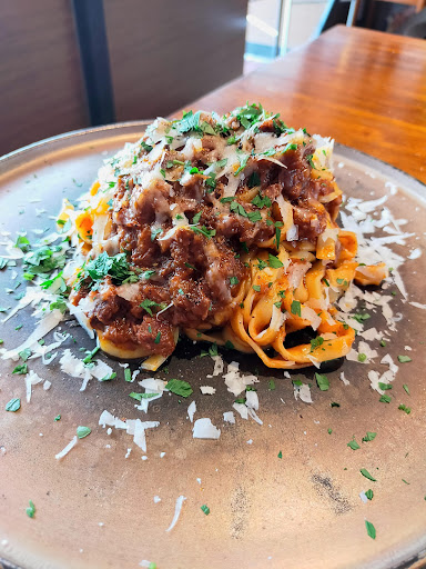 生パスタ(タリアテッレ)は少し柔わい食感 ホロホロになった牛肉の旨味と食感と 香味野菜のコクがあり王道のボロネーゼ 美味しいんやけど赤ワインの風味強めで ワインと一緒に頂く用に合わせた感じの味付け