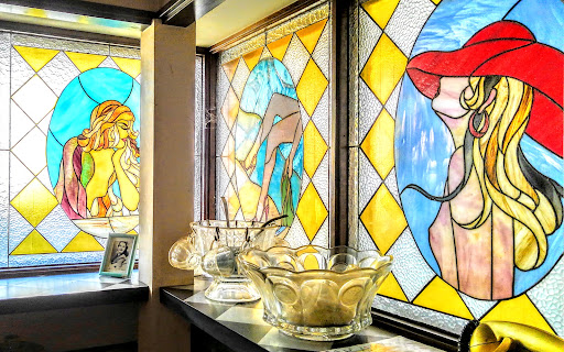 明治時代の蔵を移築し、窓にはステンドグラス 店内も素敵なアンティーク家具や装飾品があり 見ていて楽しめるモダンレトロな空間です✨