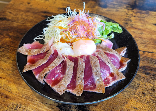 インスタ映えするステーキ肉がたっぷりの っているステーキ丼。