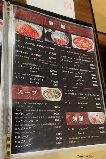 ハーフでこの金額帯ですので、もうもう亭は結構な高級焼肉屋さんということなりますね。 特に、 上タンの金額はハーフでなければ、「5,500円」 ですので、結構金額であることは間違いないです。