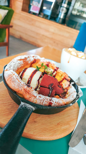 私は、ピーチメルバダッチベイビー ダッチベイビーパンケーキを食べるのは初めてでしたが、シュークリームのしっかりめな生地みたいで、見た目より軽い食感でした たっぷりの桃とクリーム そこに、ブルーベリーソースをかけて頂きます とっても美味しかった☆ スキレットでの提供なので、クリームが...