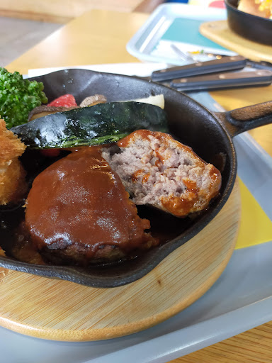 柔らかい合挽きハンバーグと 焼き野菜たっぷり ライスは天栄村の漢方農法米を使用 このご飯美味しかった~