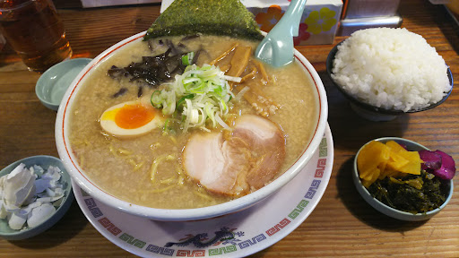 Read more背油をバシバシ入れてニンニクもスプーン山盛り入れて食べる人には最高でしょう!二人で行って醤油と塩の二種類を注文。塩のほうをバリ固でお願いしました。それにしてもラーメン屋さんでは広いほうですね!ちらっと見た厨房も広いです!注文したラーメンがきました。スープは味が薄いかなぁ?キクラゲが入っているのは嬉しい!麺は、あれぇ?低加水のストレートじゃないんだ!少しウェーブがかかっているけどバリ固じゃなくて固めです!高菜の漬物を入れて胡椒をかけて、ちょうどいいかなぁ?でも紅しょうがが無いのがつらい!一杯目無料のご飯はダメ!全然おいしくありません。油っけ無しの古米かい?お金払うから新米を用意してください!リーズナブルな価格で無料サービスもあるのはいいけれど味...