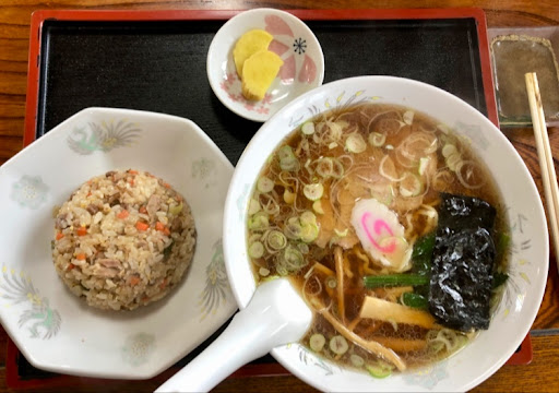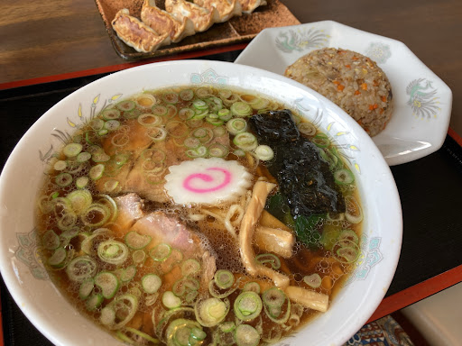 「郡山市三穂田町 お食事処 自家製ラーメン しょうふく しょうゆラーメン 半チャーハン ギョーザ」 650円+350円+350円