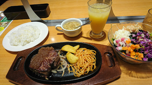 Read more金曜日の夜、19時40分頃。 夕飯で伺いました。 来店者は、私以外に3名程。 ガラガラ状態。 テーブルには、ランチメニュー(笑) 案内も、ランチメニュー(笑) 注文前に、 『ランチまだやってるの?』って 確認したら、 『申し訳ございませんでした。』 との事。 サラダ、ライス、スープ、ドリンクのフルセットとステーキと一緒に注文。 ①サラダバー ポテトサラダがカピカピカラカラに乾いていました。レタスは、茶色に変身し、またもやカピカピ(笑)サイコロカットされたニンジンも、白く変色しカピカピ。もう笑うしかない。 ②スープバー 特に良くも悪くもなく、コーンポタージュスープに膜が張り、最後に飲んだの誰?いつ?店員さんが確認したのは、いつかな? ③ライスバー ツヤ無し、湯気なし、パッサパサ(笑) ④ドリンクバー 種類も豊富で!唯一、良かった~👍