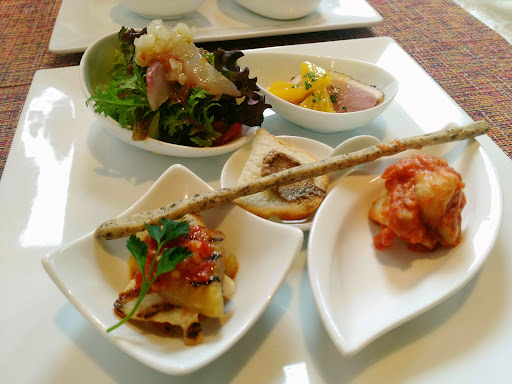 どのお料理も素材の味を引き立てていてとっても美味しくいただきました。 お野菜にこだわっているそうで、生ハムのサラダの中には普段は食べないようなフラワーサラダ?も入っていたり、生のナスが入っていたりと、食べていて楽しいサラダでした!
