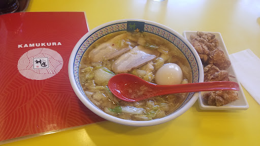 広い専用駐車場有。 店内は、U字型のカウンター席と、ボックス状のテーブル席。 “大和高田市 神座”で検索しても出てこなくてなんでかな?と思ったら、大和高田店と名前がついていますが、住所は北葛城郡広陵町です。 タッチパネルでの注文。 ***** お料理 ***** ■半炒飯+からあげセット。 ラーメンとのセットメニューです。 こちらのお店で、からあげは初めてかナ? 外はカリっと、中はジューシーなからあげ。 半炒飯は、玉子、ねぎ、チャーシューなどの入ったパラっとしたもの。 ■おいしいラーメン。 甘みとコクがあるのにあっさりとしたスープは、コンソメ+野菜ベースの醤油味。 細めのストレートたまご麺。 具は、チャーシュー、クタッとした白菜、豚肉など。 ■煮玉子ラーメン。 おいしいラーメンに煮玉子トッピングですね。 煮玉子丸ごとだと食べにくいんぢゃよ…。 メニュー写真のように半分に切っておいてくれたらいいのにネ。 ニラダレや辛子味噌、おろしニンニクを入れると味わいに変化が出ます。 スープを最後の一滴まで飲み干してしまいました。 丼の底に 数か国語で『ありがとう』の文字。 おいしいラーメンを食べさしてもらってこちらこそ『ありがとう』です! 御馳走様でした。 どこの支店で食べても同じ味ですので安心して訪問できます。 ■食後に支払いなのですが、レジは自動精算機でした。 人手不足に対応したシステムですね。