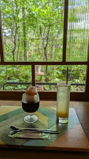 Read more立派な古民家をリノベーションした趣のある母屋には、人気の【さびカフェ】があります。 ※ランチは6月で終了。※お席の予約不可。 カフェ入口までのアプローチは緑に囲まれており、気候のいい季節は縁側のお席が人気です。広いお座敷スペースはエアコンが一切ないため、夏場の飲食スペースはキッチン側の空調エリアを案内されていました。 カウンター席にてデザートをいただきました。