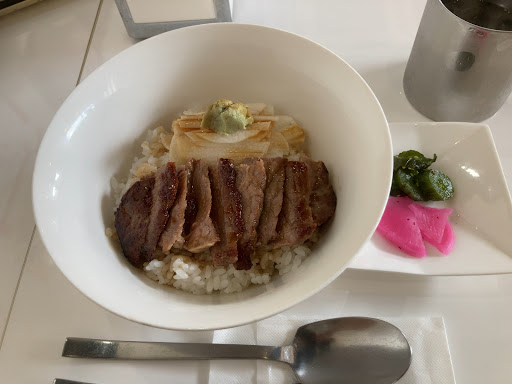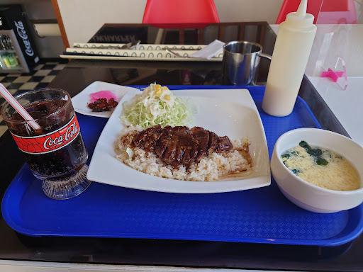 旅行の際、妻と友人夫妻と4人で利用させていただきました。 注文したのは牛ステーキのせガーリックライスと100%ビーフハンバーグ。 この二つを味わうだけでも、浜松駅から足を伸ばした甲斐がありました。 牛ステーキは脂の口溶けがよいのはもちろん、食事の終盤で少し温度が低くなってなお柔らかく、ご飯が大変進みました。それを受け止めるガーリックライスはガッツリした味わいの割に重たくなく、胃もたれしやすい私でも最後まで楽しめました。 100パーセントビーフハンバーグはその名のとおり、というかそれ以上の衝撃。世間では「牛肉だけ」と銘打ってはいても、僅かにツナギや玉ねぎの風味が残るハンバーグも多いですが、こちらの100パーセントビーフハンバーグは良質な牛肉の旨みと食感だけがひたすらに押し寄せてきます。いわゆるハンバーグというより鉄板焼きのレアステーキに近いように思います。ナイフを当てると溢れんばかりの肉汁が染み出してきて、逃さず味わうのに必死でした笑 店内の雰囲気は数十年前のアメリカをイメージしたような豪快な印象で、料理の繊細な味わいとの対比も楽しみの一つです。 東北住まいの私からすると遠方ではありますが、それを差し置いても再訪したいと思わせ...