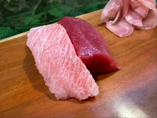 中トロから始まり、白身と赤身のヅケ2種類。 美味い。
