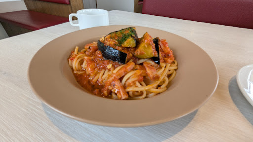 Read moreセルフサービスのお店。平日お昼に訪問したがお客さんは一組のみ。 入店してまず空いてる席を確保、テーブルに置いてあるメニューを見て注文品を決めた後、カウンターにて注文、支払いする。 キッチン前にサラダバーやドリンクバーがあり、パスタ用のフォークも置いてある。パスタはもちもちした太めの麺。なすとベーコンのトマトソースはねっとりとしていて漕い目の味。個人的には好きな部類だが、人によっては好き嫌いが分れると思う。食べ終わったらお店奥の返却口に返す。 レジでスタンプカードをもらえ、500円利用で1つ押してもらえる。10個たまると500円割引きしてもらえるそうだ。 お店の場所は、イオンタウンのいちばん東側の出入口のすぐ前にある。 駐車場はイオンタウンの広い駐車場を使えるの...