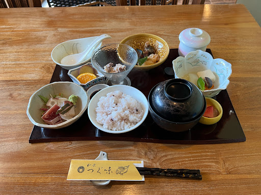 2025年10月18日の親友との、ゆるキャン静岡聖地巡礼旅行の2日目のお昼ご飯は何処にしようか凄く迷ってしまいました。親友が、ここの「つぐ味」さんからすぐ近くの「マルマ養魚」さんで、お土産の鰻とかを注文して、買いに行ったので、そこの従業員さんにこの辺湖西市で、何処か美味しいお店ありますか?って聞いていて、いくつか挙げてもらったのですが、お店の時間がやっていないとか、もうこの時13時近くなっていたので、近いところを探して貰ってようやく、「つぐ味」さんに行く事に決まりましたよ。和食のお店みたいだったので、行ってみようと言う事になり、「マルマ養魚」さんにお世話になった後、直ぐに向かいました。時間がお昼時を過ぎていたので、先客は居ませんでしたよ。座敷2つ、テーブル1つ、カウンター5席位の小さなお店でしたよ。駐車場は、店の前に3台位置けますよ。早速入って、店員さんにおすすめを聞いて、メニューを見ました。刺身定食がおすすめだと言う事だったので、親友とそれを2人分頼みましたよ。カウンターの奥では、ご主人が料理を作っていますね。注文してから、刺身も捌くみたいなので、少し時間はかかります。20分ほどして、刺身定食が運ばれて来ました。結構豪華でしたよ。2500円位しましたよ。刺身の盛り合わせは、マグロと、鯛などでとても美味しそうでしたよ。後、味噌汁と小鉢と、漬け物が付きます。早速お腹が空いていたのでいただきました。刺身のマグロや鯛はとても柔らかくて新鮮で美味しくてご飯が進みましたよ。今回の旅で刺身など、生魚は初だったので、盛り付けもとても綺麗で、味もとても美味しかったです!刺身定食の途中で、自家製茶碗蒸しも付いて来ましたよ。こちらもまた、暑くて作り立てでとても美味しかったですよ!食べ終わった後には、自家製バニラアイスも出て来ました。とっても今回初めて「つぐ味」さんに行ってとても満足できましたよ!また、湖西市の方に車で来る時があったら、もう一度行ってみたいですね!美味しいお昼ご飯をどうもご馳走様でした...