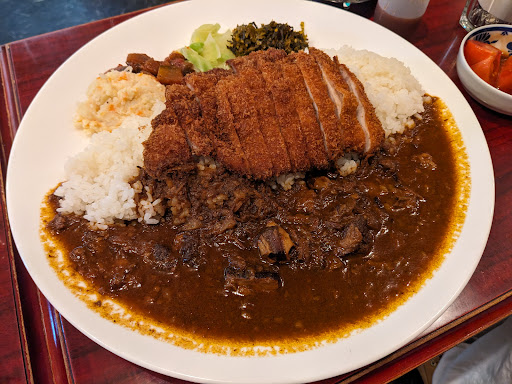 Read more息子と2人で来店しました。カレー屋さんですが、カラオケも出来るお店です😊カラオケしている年配の方の歌を聞きながら楽しい雰囲気で過ごしました。おすすめの謹製カツカレーとビールを注文。爆量なのは聞いていたけど、2人でも食べ切れない量でした。テイクアウトも対応して頂けるとの事です。 カレー🍛と一緒に添えられていた副菜4種(ポテサラ、茄子、キャベツ、高菜)もとても美味しく、お店オリジナルソースをかけて頂いて👈これも美味しい✨、食べ切りましたw ビールのおつまみも何品か注文しましたが、美味しかったです。 次の来店時には、食べたくてもお腹いっぱいで食べられなかったメニューを注文したいと思っています。😃 店主さんと奥様のお子様3人、とても可愛らしく...