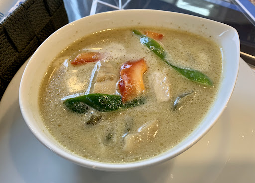 おすすめして頂いた空芯菜、にんにくと唐辛子のピリッとした味付けがシンハービールにとっても合います🍻 プーパッポンカリーは餅米と一緒に 身は柔らかくマイルドな味付けにご飯が進む!