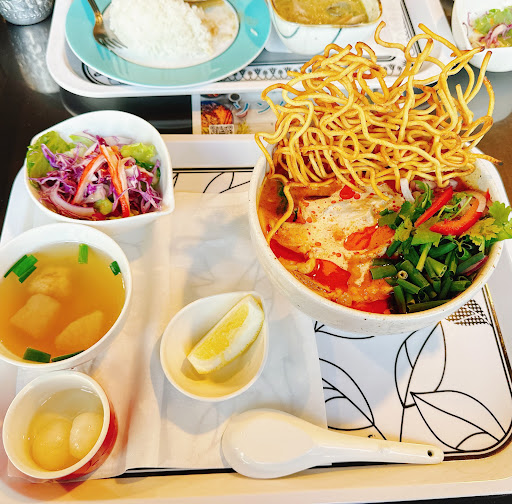 ランチにカオソーイを頂きました⭐︎ メインメニューには載っていなかったからか少し時間かかるととのことす カオソーイはコクがありチキンもぷりぷりでボリュームたっぷりでとても美味しくスープも全部飲みました! お茶もお手製で美味しいです♪