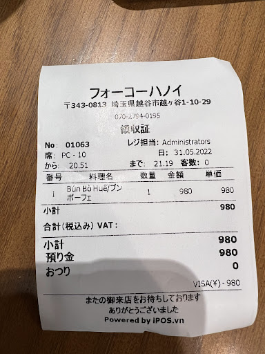 最後になったが、お店の名前は「ベトナム料理専門店 フォーコーハノイ」だ。越谷でこのクォリティのベトナム料理が食べられるなんて、本当に素晴らしい。開店...