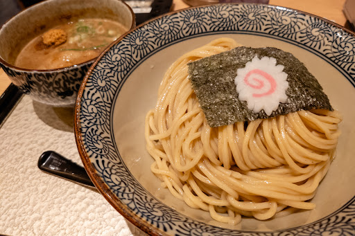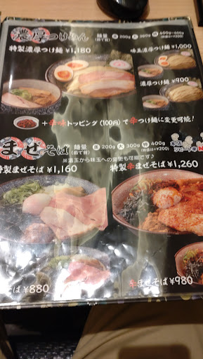 はじめての訪問です。 今日はとても暑かった事もありつけ麺が食べたいなと思ってかなり他の店と迷いましたがこちらに。本来であればはじめての場合看板商品を食べるようにしてますが、口はつけ麺を欲していたのでつけ麺大盛りをオーダーしました。 正直店内空調が効きすぎてかなり寒いです。途中でラーメンにすればよかったと後悔するほど冷えています。 店内はテーブル席と少し離れたところにカウンター席があります。 水は入口にありましたが店員さんが持ってきてくれました。 終始接客は良かったです。 つけ麺ですが、茶褐色の中太タイプの麺です。濃厚つけ麺と言えば極太が多いですが珍しいなと思い食べてみるとわかりました。 つけ汁は濃度結構あるタイプで濃厚です。 しかし、塩味のキレがそこまで立っていないマイルドタイプのため中太の麺でも丁度よい。 最初は少しこの塩味の少なさが物足りなさを感じさせましたが、食べ進めていくとちょうどよくなってきます。 濃厚ながら毎日食べれるつけ麺のような気がします。 麺は中太ながらとてもコシと歯ごたえもあり美味しいです。これなら極太でなくても満足です。 つけ汁と麺がちょうどよいバランスで、ひたひたにつけても麺の小麦感を感じられます。 なんかちょっと一周回り新感覚かもしれません。 具材のメンマを食べると何故かメンマは物凄く味が強かったです。 食べた瞬間の中毒性や美味いとすぐ脳が感じるものではないですが、毎日食べれるような食べ進めると心地よくなる一杯です。 接客と空間、会計にキャッシュレスが使えるという点を加味して★5です。 次はラーメン食べてみたいですが、つけ麺おすすめです。 一時期のブーム濃厚魚介つけ麺よりなんか進化したような食べやすいバランス良い一杯で...