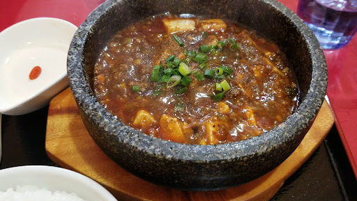 着席と同時にAランチ中辛をオーダー 5分位で着丼 石鍋蓋付きで 他にもスープに小皿料理が3品と 杏仁豆腐 蓋を開けてみるとグツグツしてる 1口食べた瞬間に汗がブワァ〜💦 これだよこれ これ 花椒が多めで これぐらいじゃないと物足りなく感じる 噎せるが むせながら 次から次に口に運ばずにはいられない もちろん鍋もグツグツだが 食欲の方が断然上回るから止められない あっという間にライスがなくなり おかわり 2杯目半分くらい食したところで 小皿料理に気付く ここからは 1品集中じゃなく 全品に目を向けて食事を更に楽しむ 美味しすぎて結局4杯食べてしまった