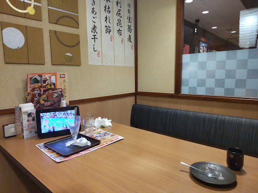 お昼に海老天特盛そばを頼みましたが、正直まずい!来たときから麺はくっついてるし、薬味は少ないし、ファミレスだからと言って蕎麦に風味とか求めてはいけないでしょうが、まずい!ちぎれてぼろぼろのそばも見た目が悪い!子供にお子様セットのうどんを頼みましたが冷食の讃岐うどんの方がおいしいです。ついてたポテトはパサパサモソモソ。あれで500円はないと思います。ファミレスはこんなもんですませれるんでしょうか?作り手が悪いのか、グループ全部がこの味なのか、子供はまったく手をつけず帰りにコンビニで買ったクロワッサンをおいしいおいしいとニコニコしながら食べていました。あの味でお金を払うのも嫌ですし、せっかくの外食、二度とこの店、グループには行かないと思います。 後、今後よる人でお子様連れの方のために、畳なんだから子供用のイスは固定できるもの、ベルト着きのを採用するよう今後食事をする方のためにいいと思います。 長々とすみません、二度と行きません...