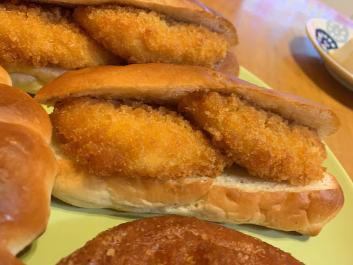 誰も居なくてもカウンター上にある『チャイム』を押すとは〜いとすぐ来てくれます 今回購入したのは たまごサンド165円、コロッケぱん120円、えびグラタンぱん120円、熟成ロースカツぱん140円、ツイストドーナツ2本90円(サービス品?!) どれも安くて美味しい! ツイストドーナツは昨日の残りなのかな?安くてびっくり。食べてみると堅くもなくグラニュー糖がたっぷりまぶされていて美味しかった。 えびグラタンは海老の風味がしっかり感じられ、みずみずしいレタスが有難い。マヨネーズと相まってペロリと完食。 熟成ロースカツぱんはカツが2切れとシャキッとしたレタスがサンドされている。 カツがしっとり柔らかくてとても食べやすい。これが熟成された賜物なのかな? コロッケぱんはまだ頂いていないが食べるのが楽しみだ。 こちらのコッペパンは、焼き色のよくついた弾力のあるパンでパサつきは私は感じなかった。パンに歯応えがあるので小食なかたなら一つで満足できそう。 揚げ物も上手に揚がっていて衣がカリカリ。ジューシー。 夕方からロースカツとかコロッケ、唐揚げを単品で売ってもいいんじゃないかなぁ 揚げ物しない家庭とか増えてきてるし、場所的に売れると思う。