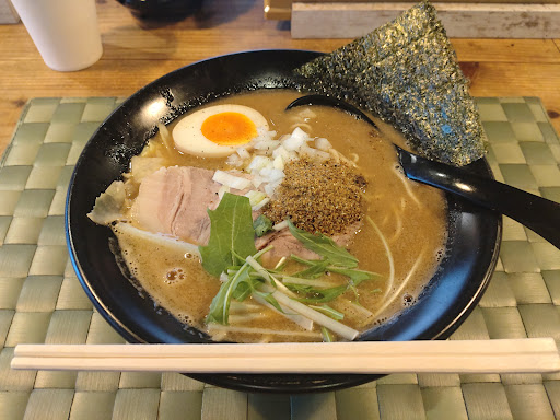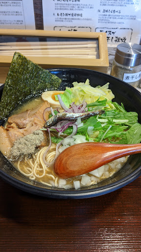 Read more越谷市の弥十郎に出来た新店舗 何回か訪問したのですが、駐車場が、店舗入り口に一台と、向かいの貸駐車場の28番に一台しかなく、近くにコインパーキングも無く、営業時間も朝8時から14時までと、閉店時間が早いため、駐車場が開く前に閉店してしまい😖今日で3度目の正直でした💦 店内は間口は狭いものの、奥行きはそこそこあり、カウンターが席のみですが、わりとキャパがあります😁 平日の2時前なのに、わりと混んでいます すでに、常連のお客さんがいる感じで、地元に根ざしたラーメン屋さんになりそうな予感がひしひしと伝わってきました😃 初訪問なので、食券販売機左上の、あっさり煮干しラーメンをチョイス およそ5分ほどで着丼! 結構具沢山と言うのが見た目の印象です まずはスープからいただきましたが、煮干し専門店によくある、煮干しのエグみや苦味などは全く感じないまろやかな味わいだけど、舌に残るのは煮干の出汁の旨味です 和食のシンプルなのに奥深い美味しさ、具材を活かす「黙して語らぬ」日本の美徳を感じます 麺は細めで、歯ごたえもあり、スープにマッチしています 具には、玉ねぎや海苔やキャベツなど入っていましたが、キャベツは不要ではないのかなと言うのが、率直な感想です😅 印象的だったのがチャーシューでした 今流行の低温加熱した赤いチャーシューではなく、かと言って昔ながらのしっかり煮込んだチャーシューでもない、それでいて柔らかく、肉の旨味をしっかりと味わえるチャーシューで、更に一枚のボリューム満点です😁 薬味の魚粉やレモン酢を入れて、味変も楽しみながら、スープを一滴も残さず完食しました 一つだけ言わせてもらえば、駐車場をもっと増やしてもらいたい...