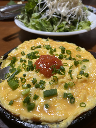 ほかにも 明太チーズ出汁焼き玉子は 鉄板の上で混ぜ混ぜしながら 熱々を食べられるメニューで