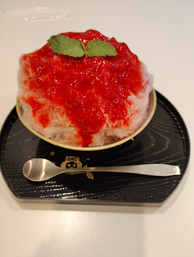 写真はありません。 かき氷を食べました。メニューに写真が載っていませんでした。 メロンの果肉が入ってるのが食べたかつたのですが、 もう終わってしまつたとのことで、でもどうしてもメロンが食べたかつたのでシロップのを注文したところ 色が黄色いメロンシロップ。味は赤肉メロンのほうかな、このメロンの味が好きな方にはおすすめですが、 ちょっと後味が微妙、二人で行ったので2個目を半分ずつ食べるつもりで口直しにいちごを注文したら、見た目はつぶつぶがありますが、ちょっと前の写真と比べると薄い感じ。 食べてみると味も薄めで酸味が強い。シロップが何かほしいな~と思ったのですが、天然氷であっという間に溶けてしまうので追加も間に合わないです。 普通の味で食べたかつたのと 値段と比べるとこんなもんなのか、とおもいましたが、初めて食べた天然氷、お店の緑茶とほうじ茶のフリードリンクは美味しかったです。 駐車場はないので車の方は近くのコインパーキングで平日1...