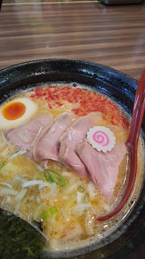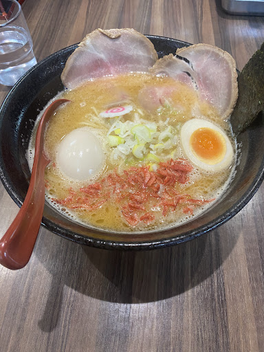 平日の11:30頃に来店。先にお客さんは2組でした。 券売機で食券を購入するスタイル。 今回は気になっていたエビとんこつラーメン(930円)味玉トッピング(100円)に替え玉(100円)を注文。 注文して5分ほどでラーメンが出てきました。 目の前に来るとエビの良い香りがして食欲をそそります。 まずはスープ、とんこつですが全然しつこい感じがなく美味しい。かわいい🍥、デフォルトで着いている卵1/2と麺、海苔と麺、どんどんすすっていきあっという間に麺を食べきってしまいそうになり、あわてて替玉を注文。 注文時にお店の方が「替玉頼む時は声をかけてくださいね」と親切説明もありました。替玉も1~2分ほどで出てきました。 替玉を投入、替玉100gですがラーメンがもう1杯食べられるようなお得感、オススメです。 スープまで飲み干してご馳走様でした。 お店も活気があり気持ちよく声をかけてくれるので美味しいのはもちろん満足感が高かったです。 次はお店オススメの鶏白湯ラーメ...