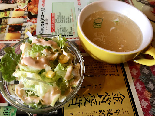 Read moreランチのチキンカレーセット(ナン)をいただきました。セット内容は、サラダ、ドリンク、カレー1種、ナンorライスです。