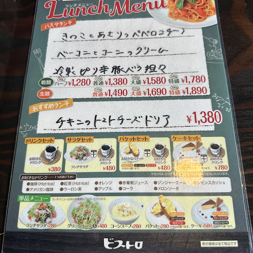 Read moreお店の前の道を何度も車で通っていて、その外観が気になっていたのですが、ようやく妻と伺う事ができました。 お店の中やスタッフさんがとても雰囲気が良く、入店してすぐに居心地の良さを感じとれました。 パスタとピザを妻と一つずつ頼み、ドリンクセットとトーストセットで注文したのですが、パスタが乾麺生麺と種類が選べるうえに、量も細かく設定されていて、大盛りにしようか戸惑いましたが、結果乾麺の普通で正解でした。 ピザがクリスピーな生地だったのですが、具材が多く食べ応えがあり、パスタも茄子やチーズがゴロゴロと入っていて、二人とも満腹な状況になってしまいました。 また、ドリンクのアイスコーヒーがジョッキできたので、味が美味しく見応えがあって、全体的にとてもコスパが良かったです。 まだまだ食べてみたいメニューがたくさんあるので、しばら...