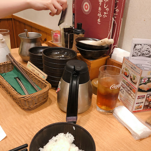 お鍋は1テーブルでひとつ。吉野家みたいに一人ひとつではない。皆でひとつの鍋をつつきます。しゃぶしゃぶもすき焼きもそうです。